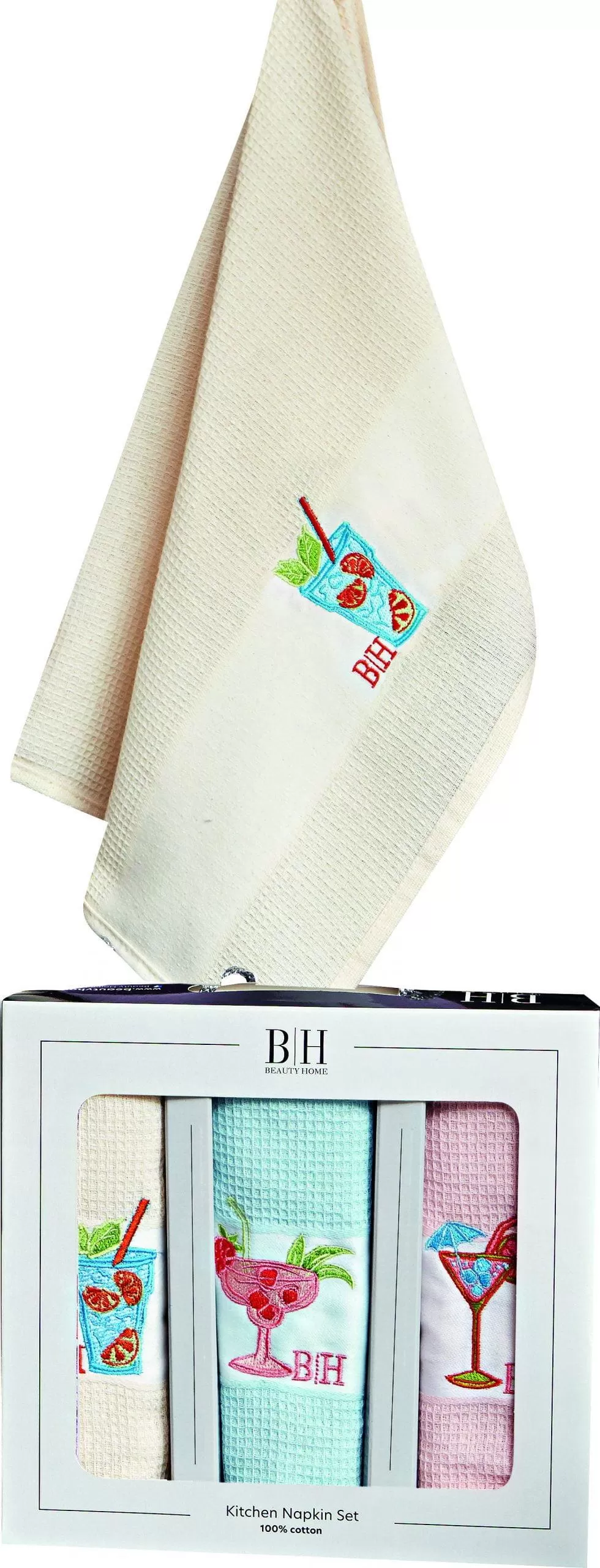 Ποτηρόπανα σετ 3τμχ Coctail Art 8286 40×60 Μπεζ,Γαλάζιο,Ροζ Beauty Home