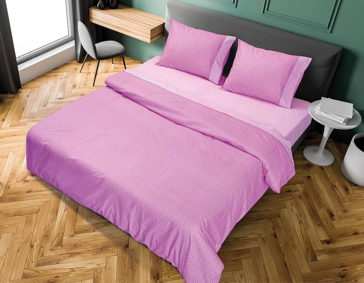 Σετ σεντόνια μονά με λάστιχο πουά JOY Art 1680 100×200+25 Μωβ Beauty Home