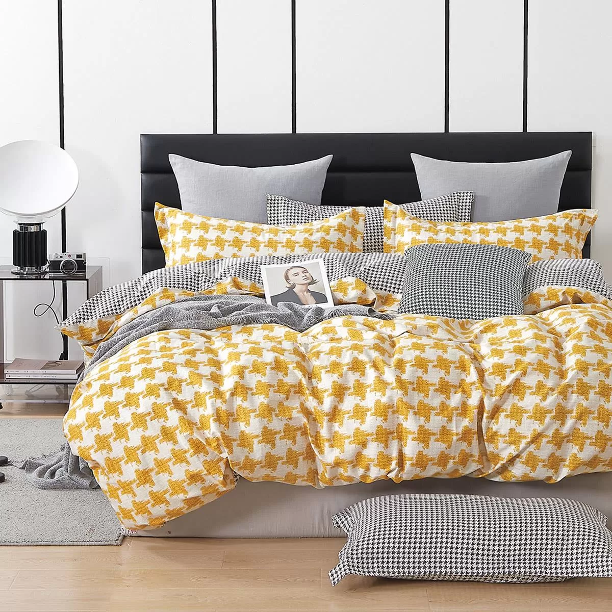 Σετ παπλωματοθήκη υπέρδιπλη Sharon Art 1961 230×250 Γκρι,Κίτρινο Beauty Home