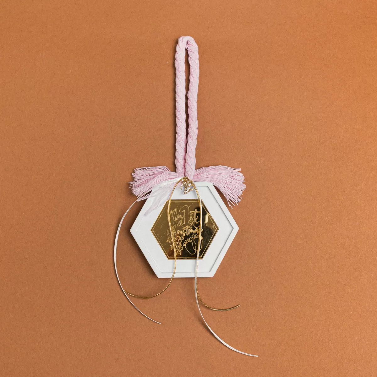 ΚΡΕΜΑΣΤΟ ΠΟΛΥΓΩΝΟ ΚΕΡΑΜΙΚΟ ΜΕ PLEXI MY 1st CHRISTMAS ΡΟΖ