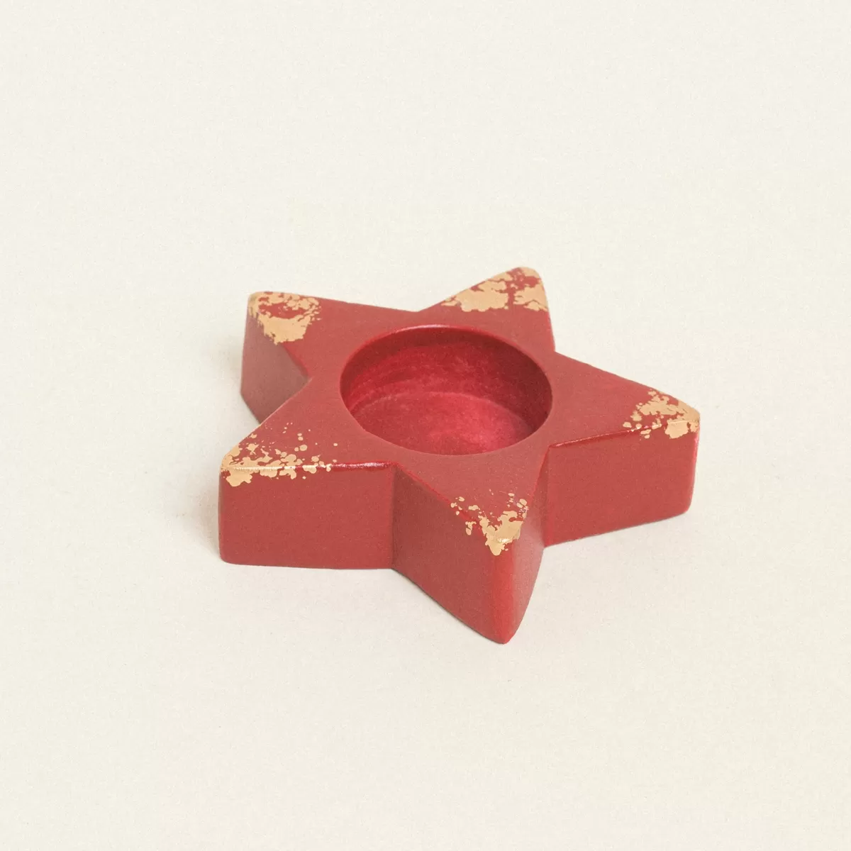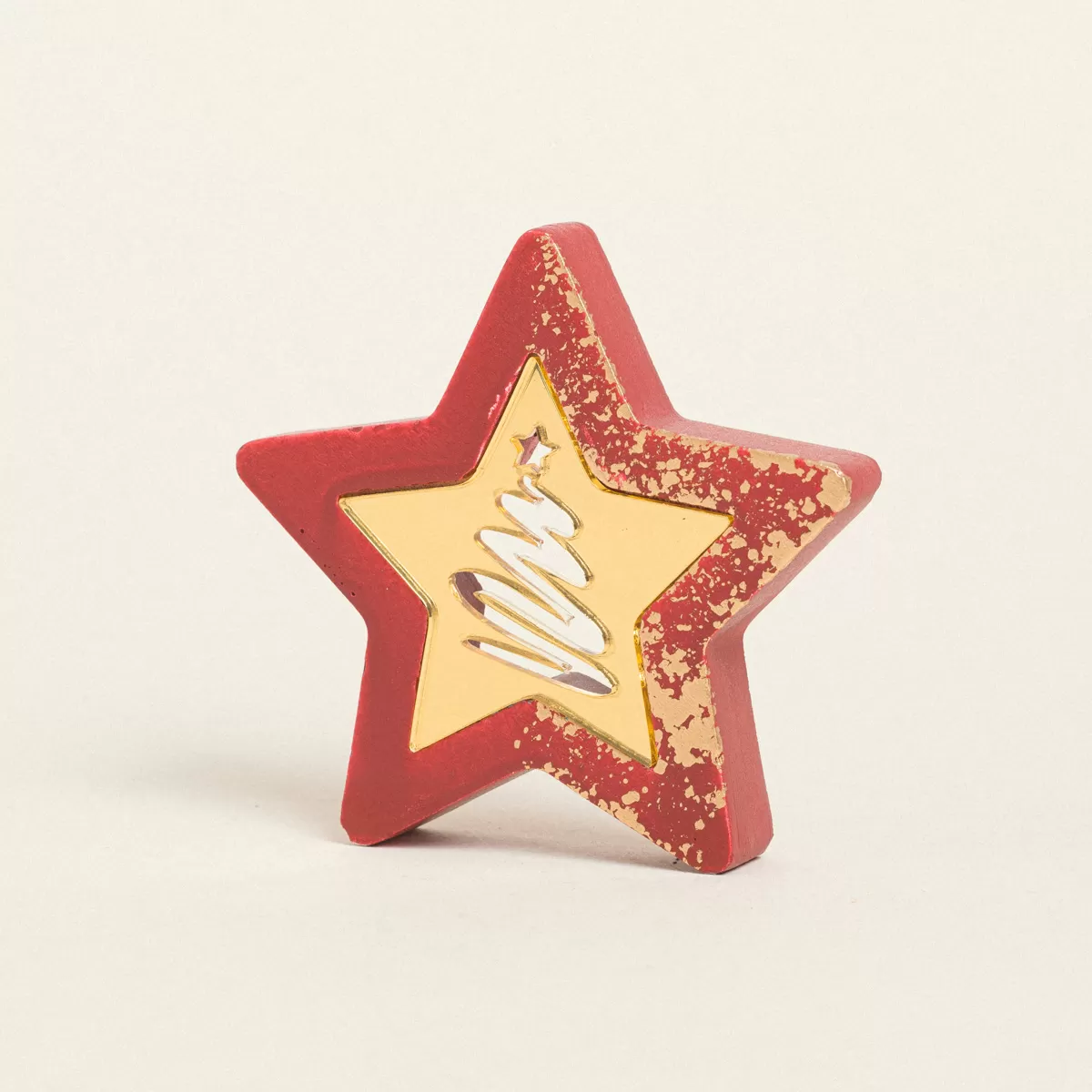 ΚΕΡΑΜΙΚΟ ΕΠΙΤΡΑΠΕΖΙΟ ΑΣΤΕΡΙ ΜΕ ΧΡΥΣΟ ΠΛΕΞΙ 11 x 11 cm ΚΟΚΚΙΝΟ