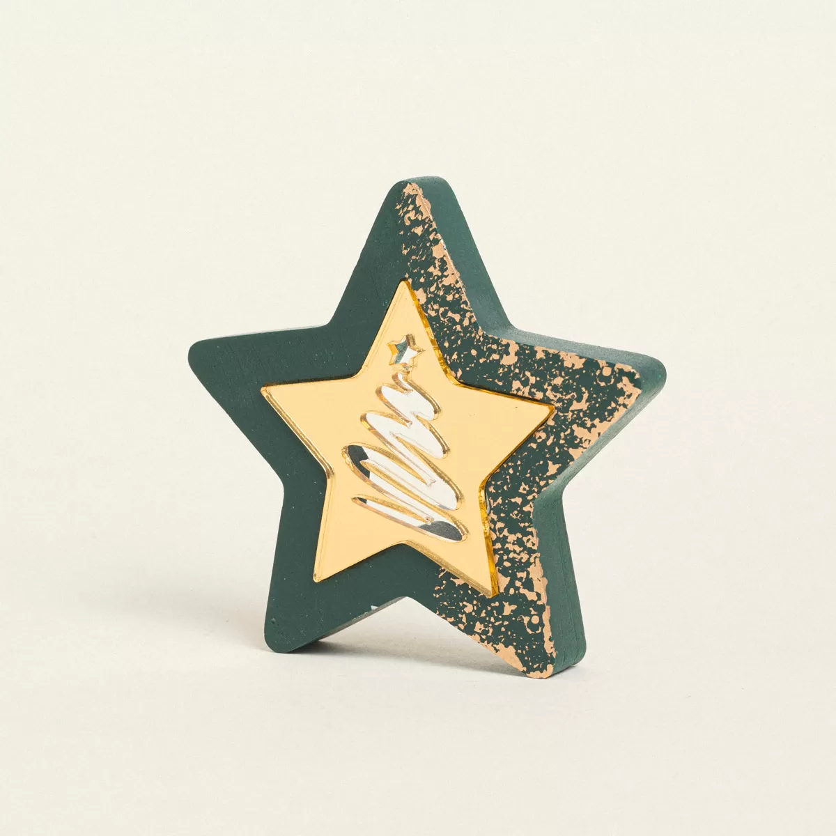 ΚΕΡΑΜΙΚΟ ΕΠΙΤΡΑΠΕΖΙΟ ΑΣΤΕΡΙ ΜΕ ΧΡΥΣΟ ΠΛΕΞΙ 11 x 11 cm ΠΡΑΣΙΝΟ