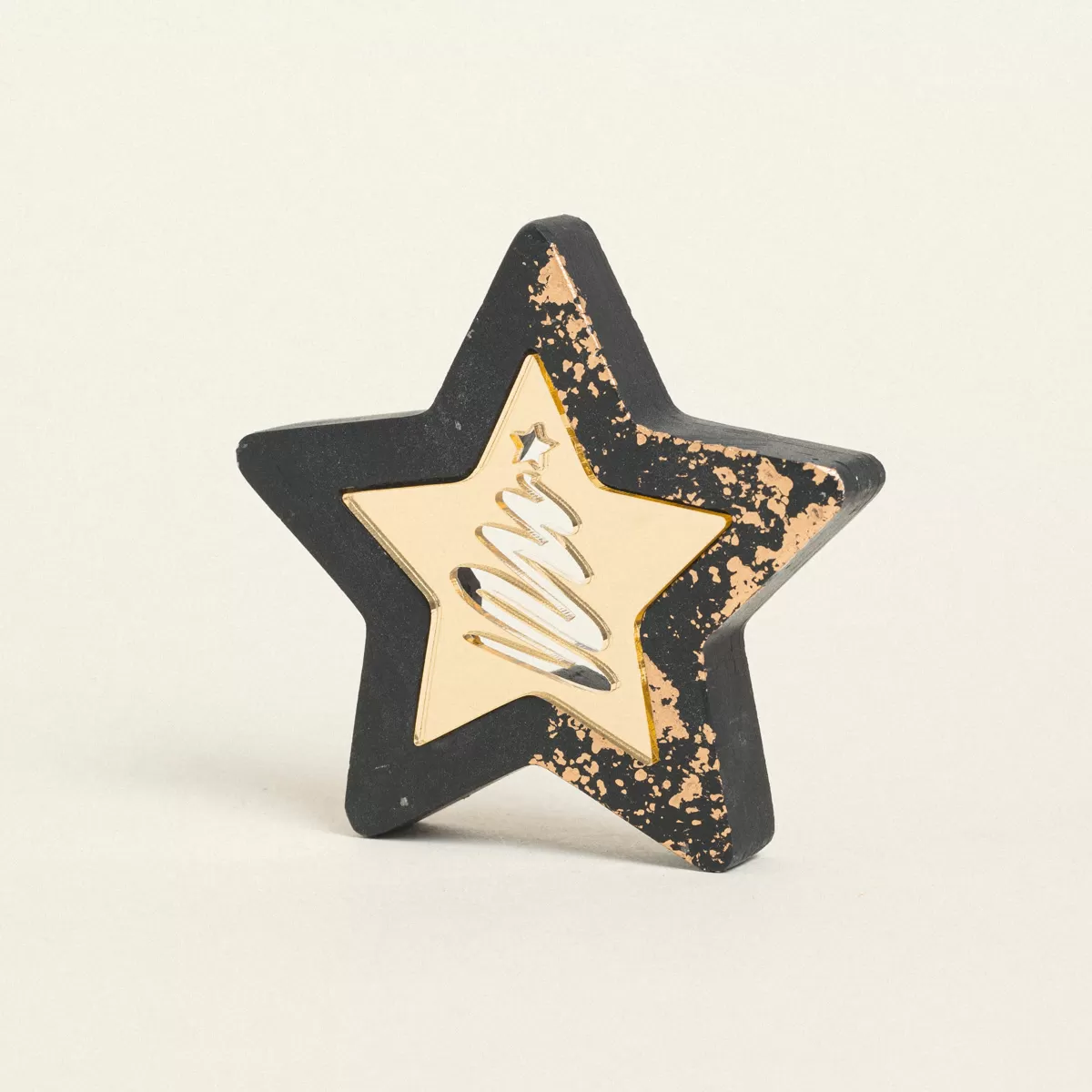 ΚΕΡΑΜΙΚΟ ΕΠΙΤΡΑΠΕΖΙΟ ΑΣΤΕΡΙ ΜΕ ΧΡΥΣΟ ΠΛΕΞΙ 11 x 11 cm ΜΑΥΡΟ
