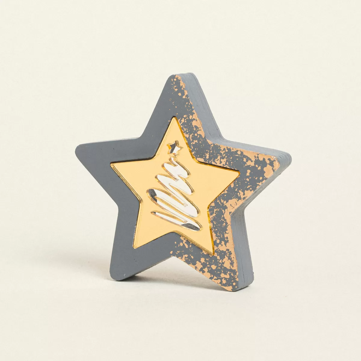 ΚΕΡΑΜΙΚΟ ΕΠΙΤΡΑΠΕΖΙΟ ΑΣΤΕΡΙ ΜΕ ΧΡΥΣΟ ΠΛΕΞΙ 11 x 11 cm ΓΚΡΙ