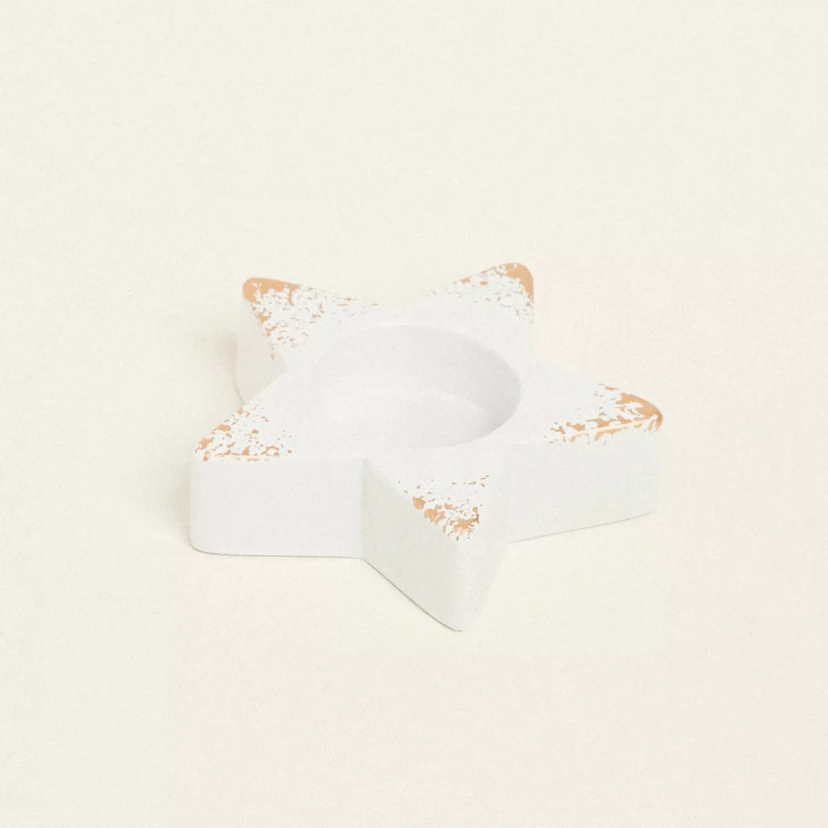 ΚΕΡΑΜΙΚΟ ΕΠΙΤΡΑΠΕΖΙΟ ΑΣΤΕΡΙ ΜΕ ΧΡΥΣΟ ΠΛΕΞΙ 11 x 11 cm ΛΕΥΚΟ