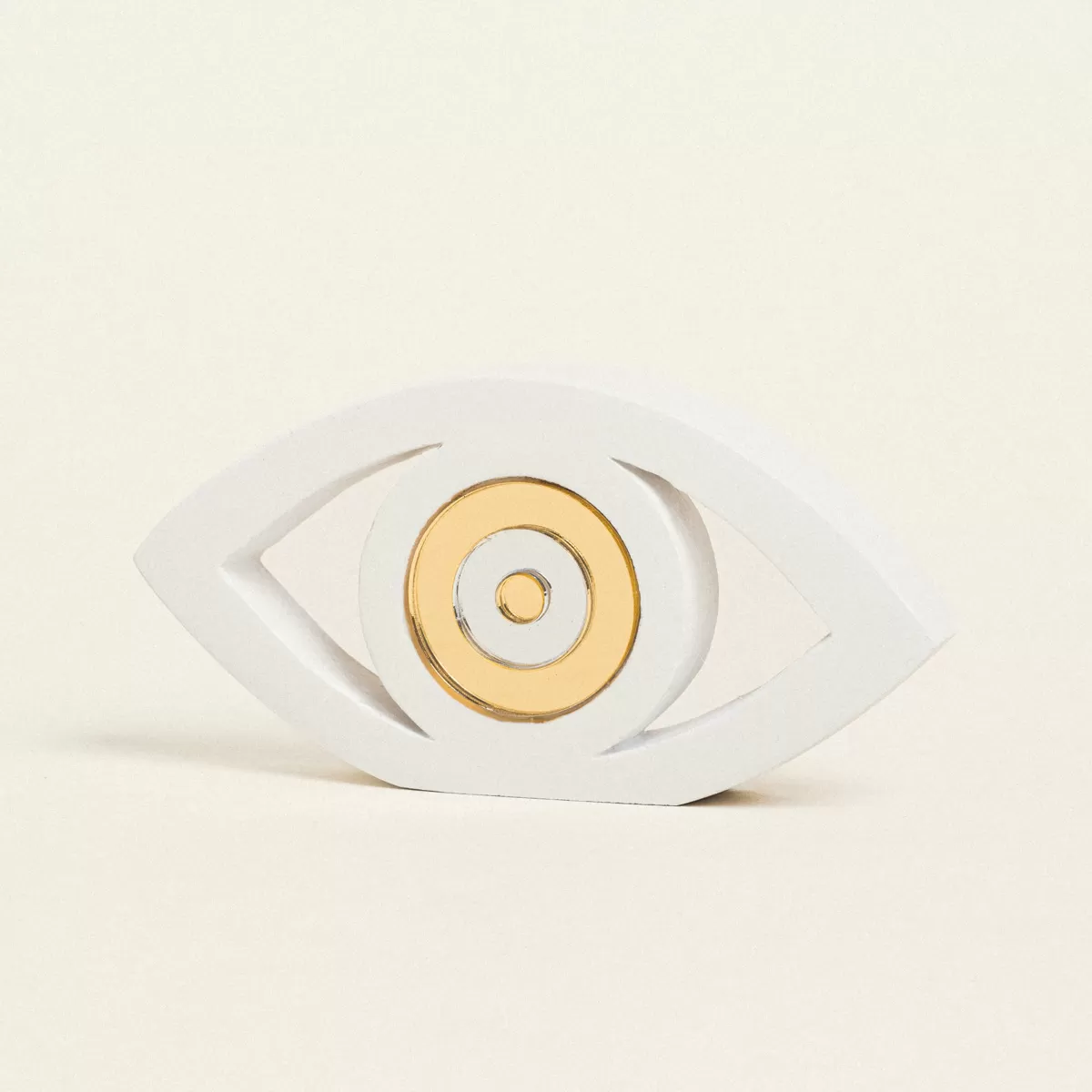 ΚΕΡΑΜΙΚΟ ΕΠΙΤΡΑΠΕΖΙΟ ΔΑΚΡΥ ΜΕ ΧΡΥΣΟ ΠΛΕΧΙ 6 x 11 cm ΛΕΥΚΟ