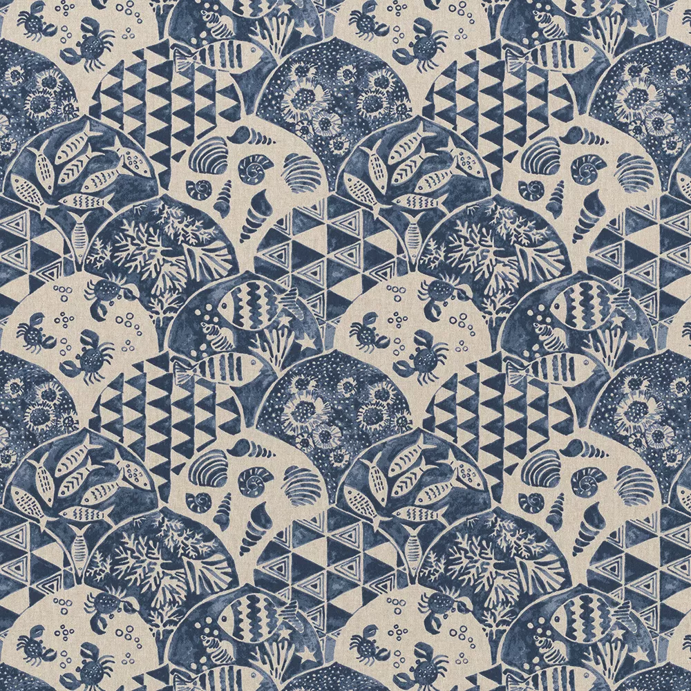 ΥΦΑΣΜΑ ΑΚΟΥΑΡΕΛΑ ΜΠΛΕ ΘΑΛΑΣΣΙΝΟ ΜΟΤΙΒΟ 140CM